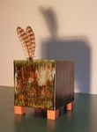 2012een impressie van een oerbos, keramiek met bosuil veren.